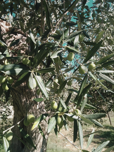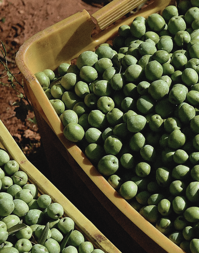 Tutto inizia dalla terra. Le olive vengono raccolte manualmente in autunno, quando raggiungono il giusto punto di invaiatura. Vengono selezionate con cura e riposte in cassette forate per assicurare il passaggio dell'aria.